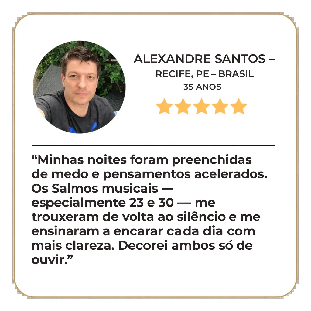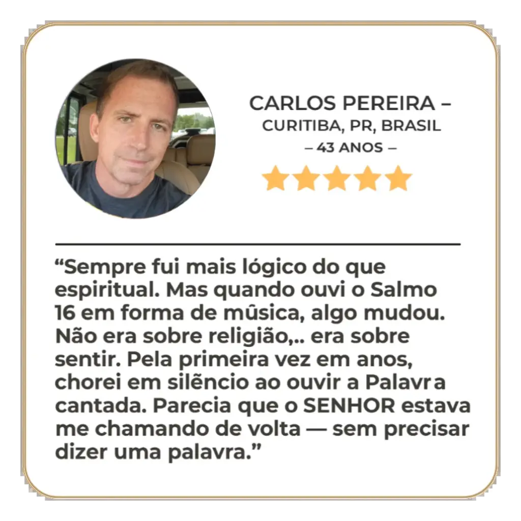 Confiado por mais de 13.248 crentes que encontraram força, cura e renovada proximidade com o Senhor — através dos Salmos cantados, versículo por versículo.