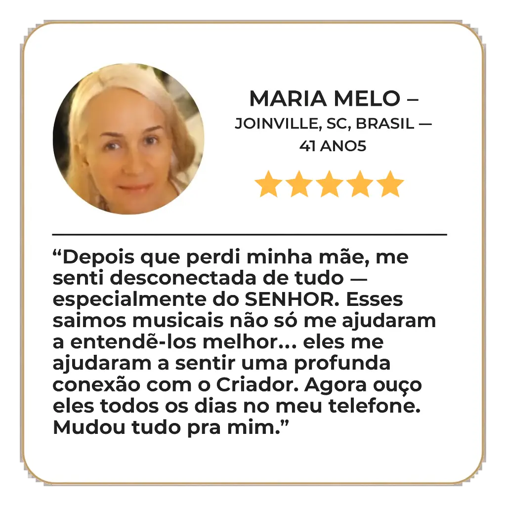 Esses salmos são mais do que canções — são orações, cantadas com reverência, para levá-lo de volta à comunhão com o Senhor. Eles já ajudaram milhares de pessoas a se sentirem mais próximas, mais claras e espiritualmente restauradas.